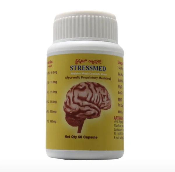 Stressmed Capsules are a comprehensive Ayurvedic solution for managing stress, anxiety, and fatigue. Formulated with powerful adaptogenic herbs, they help calm the mind, enhance mental clarity, and promote emotional balance. This natural supplement supports overall well-being by improving energy levels, sleep quality, and resilience to daily stressors.