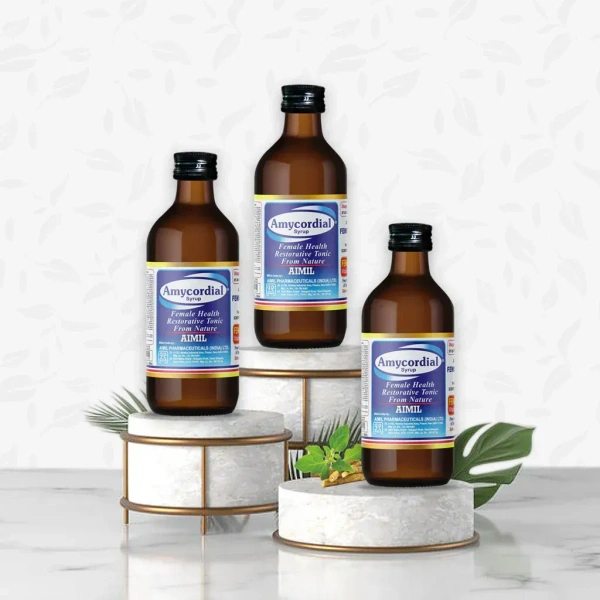 Amycordial Syrup is a proprietary Ayurvedic formulation designed to support women's health by restoring hormonal balance and addressing various gynecological concerns. This health tonic nourishes the female reproductive system, alleviates menstrual discomfort, and enhances overall well-being.