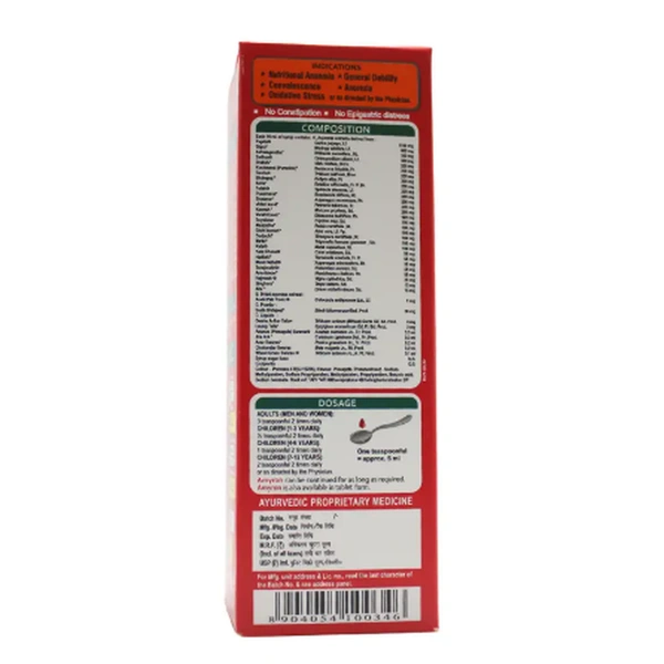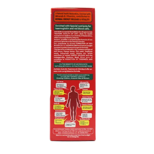 Amyron supplements natural iron from from arbi leaves, which improves haemoglobin level and RBC synthesis. Hence Amyron, provides a comprehensive formula enriched with abundant phytonutrients which is completely safe, easily digestible, gentle on stomach and available in delicious pineapple flavour.
