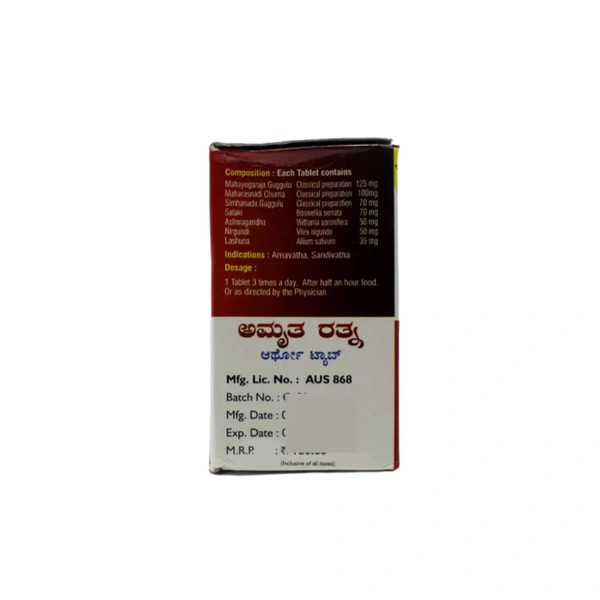 - Can Amruta Rathna Orthotab be used for arthritis pain? Yes, its anti-inflammatory properties make it effective in managing arthritis-related discomfort.