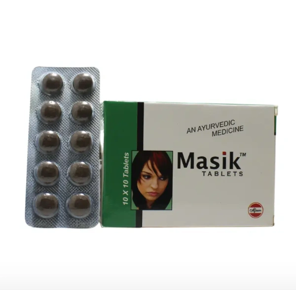Masik Tablets by Ajmera Pharmaceuticals are an Ayurvedic formulation designed to address gynecological concerns such as dysfunctional uterine bleeding (DUB) and premenstrual tension. This herbal blend aims to balance the body's doshas, particularly Pitta and Vata, promoting menstrual health and overall well-being.
