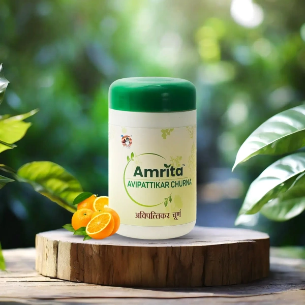 Amrita Avipattikar Churna an effective Ayurvedic formulation to manage health problems like acidity, indigestion and heartburn caused due to imbalance of pitta dosha. It helps reduce excessive heat generated due to an imbalance of Pitta dosha and provides a cooling effect inside the body.