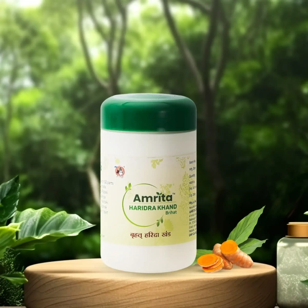 Haridra Khand is a renowned Ayurvedic formulation traditionally used to manage allergic skin conditions and enhance overall skin health. The primary ingredient, turmeric (Haridra), is celebrated for its anti-inflammatory and antioxidant properties, making this formulation effective in addressing various skin ailments.