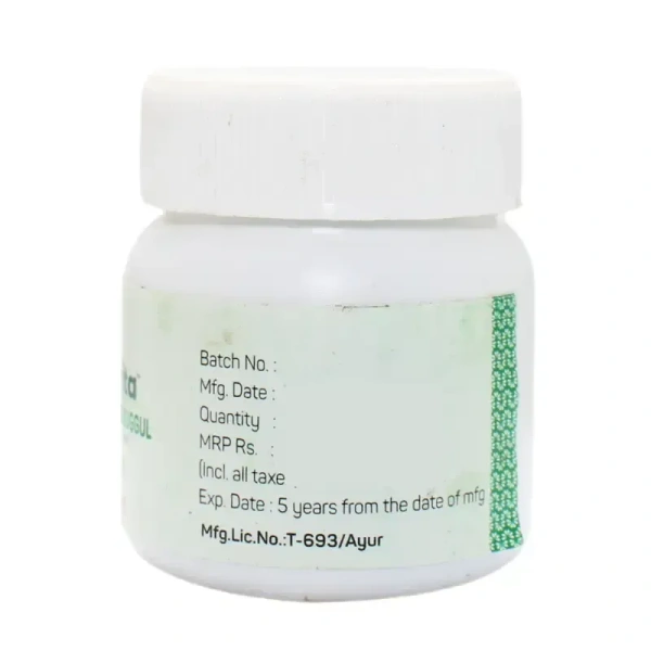 - Guggulu (Commiphora mukul): Detoxifies the body and reduces inflammation.