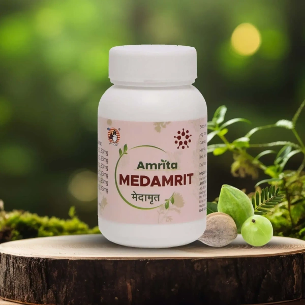 Medamrit Tablets are a specialized Ayurvedic formulation aimed at promoting healthy metabolism, weight management, and overall vitality. This herbal blend is crafted to target excessive fat accumulation, support digestion, and regulate lipid metabolism. Medamrit is ideal for individuals seeking a natural and holistic approach to maintaining a healthy body weight while enhancing energy levels and overall wellness.
