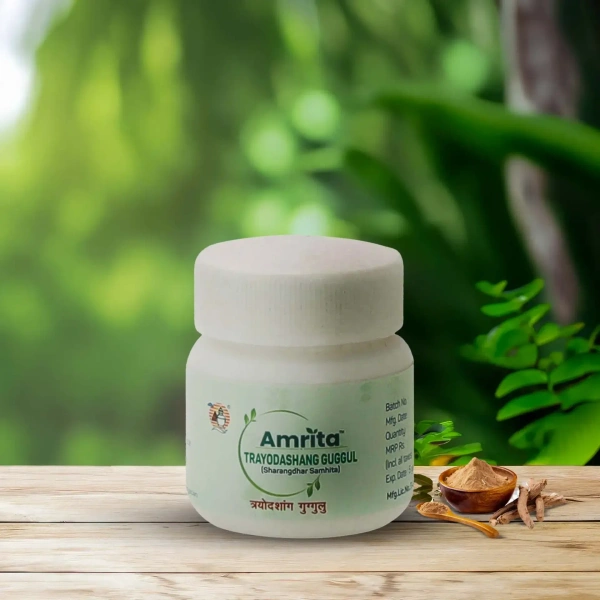 Trayodashanga Guggulu is a classical Ayurvedic formulation that supports joint and nerve health. This herbal preparation by Amrita is effective in managing pain, inflammation, and stiffness caused by conditions like arthritis, sciatica, and other musculoskeletal disorders. It helps rejuvenate tissues, improves mobility, and balances Vata dosha for overall physical wellness.