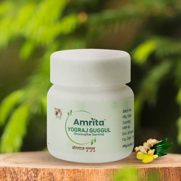 Yogaraj Guggul is a classical Ayurvedic formulation widely used for managing joint and musculoskeletal disorders. This herbal blend by Amrita is effective in relieving pain, stiffness, and inflammation associated with arthritis, gout, and sciatica. It supports detoxification, improves mobility, and balances Vata dosha, promoting overall physical health and vitality.