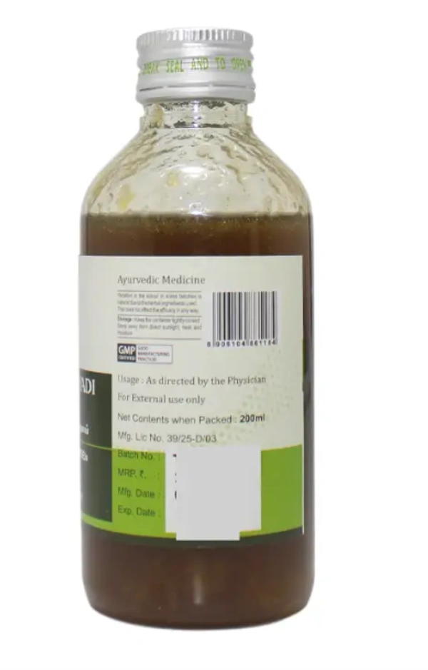 Karpasasthyadi Thailam is a classical Ayurvedic medicated oil used to treat neurological disorders, including paralysis, facial palsy, and sciatica. It soothes the nervous system, reduces pain, and balances Vata dosha.