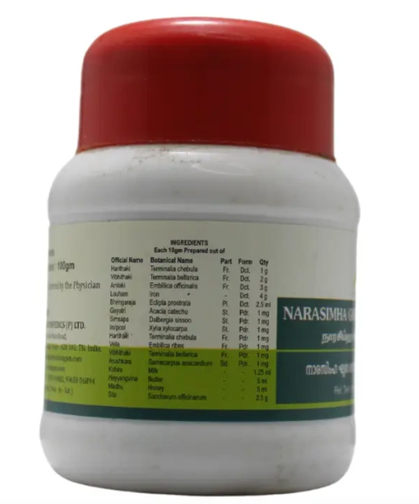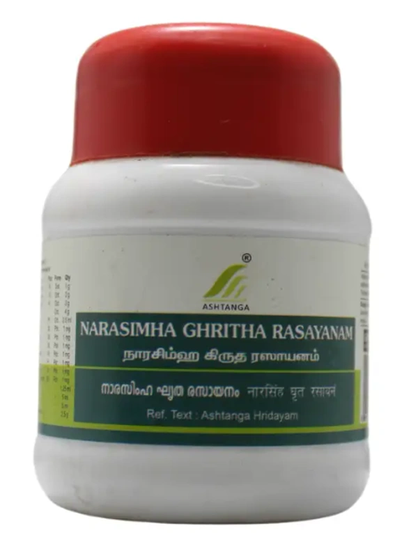 The specific product you're inquiring about, "Narasimha Ghritha Rasayanam 100Gm Ashtanga," is not directly listed in the available sources. However, similar products are available from reputable Ayurvedic pharmacies.