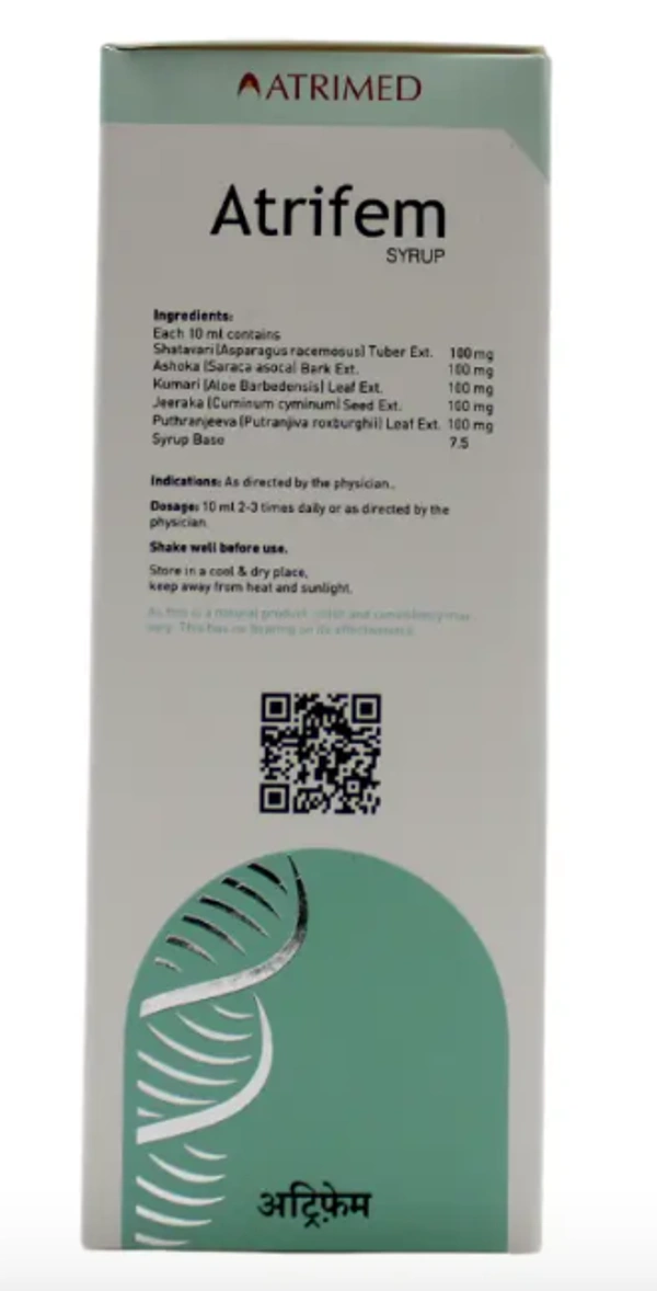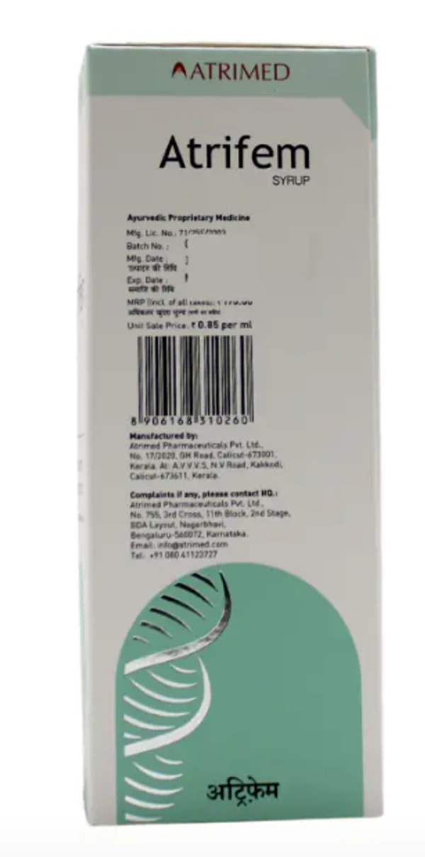- What conditions does Atrifem Syrup treat? It is effective for menstrual irregularities, hormonal imbalances, and general weakness.