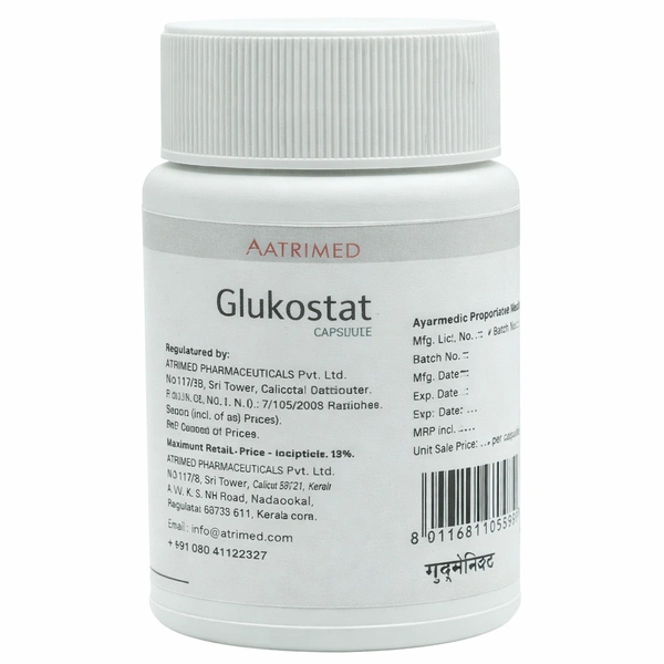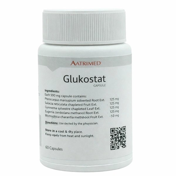 Glukostat Capsule is an Ayurvedic formulation designed to support healthy blood sugar levels. It is effective in managing Type 2 diabetes, enhancing insulin sensitivity, and reducing complications associated with high blood sugar.