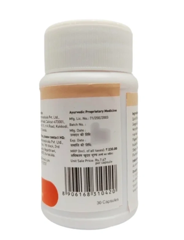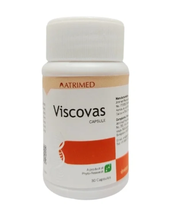 Viscovas Capsule (30CAP) provides a larger pack size of the same Ayurvedic formulation aimed at supporting cardiovascular health, improving circulation, and reducing cholesterol levels.