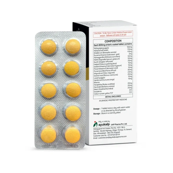 RHEUMARX GSR Tablet by Ayukalp UAP is an Ayurvedic formulation specifically crafted to provide relief from joint pain, stiffness, and inflammation associated with arthritis and other musculoskeletal disorders. Infused with powerful anti-inflammatory and analgesic herbs, it supports joint mobility, reduces swelling, and improves overall bone and joint health.