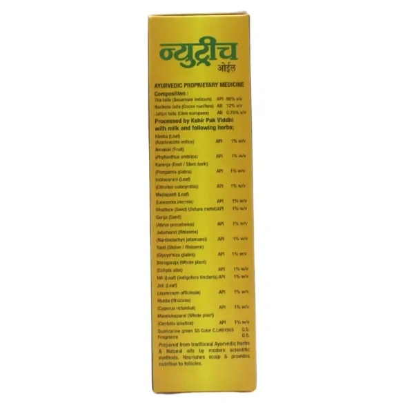 Nutrich Oil is a carefully crafted hair care oil designed to nourish the scalp, reduce dandruff, and improve the overall health of hair. This oil is free from harmful chemicals, making it suitable for long-term use. It helps keep your hair moisturized, soft, and healthy, while also promoting hair growth by providing vital nutrients to the scalp.