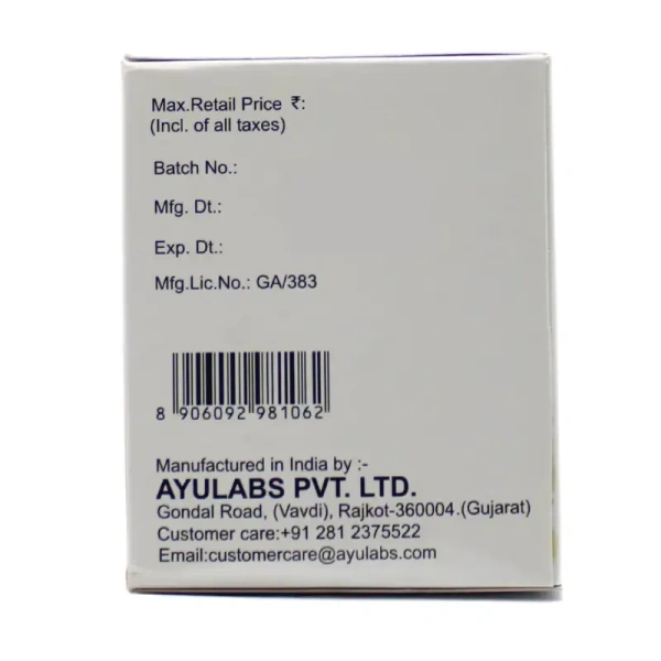 - Vitex Negundo (Nirgundi Extract): Reduces inflammation and pain in joints and muscles. Boswellia Serrata (Kunduru Extract): Known for its anti-inflammatory properties that help reduce swelling in joints. Pluchea Lanceolata (Rasna Extract): Helps in pain relief and improving joint health. Trigonella (Methi Extract): Reduces swelling and enhances the movement of joints. Tribulus Terrestris (Goksura Extract): Supports joint health and reduces inflammation. Balsamodendron Mukul (Guggulu Extract): Reduces joint stiffness and promotes overall joint flexibility.