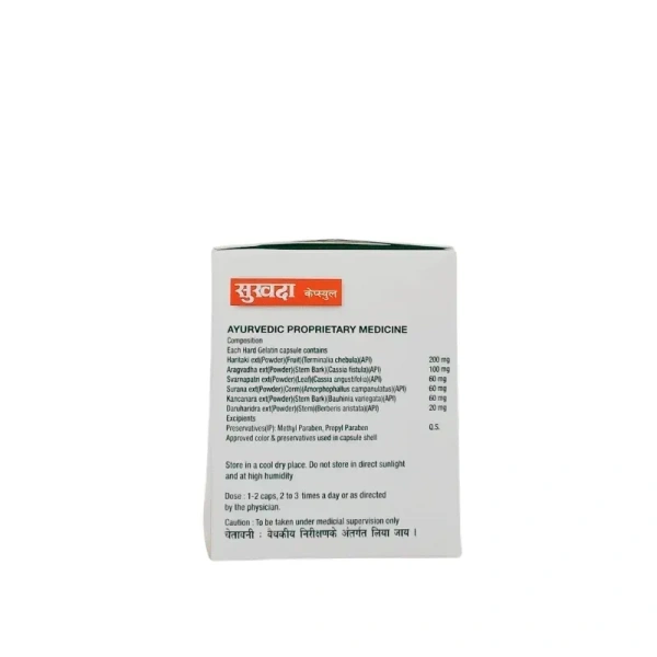 SUKHDA Capsule is a potent Ayurvedic formulation designed to provide relief from piles, fissures, and chronic constipation. It helps reduce rectal bleeding, inflammation, and pain, while promoting the healing of the mucous membranes and tissues affected by hemorrhoidal conditions. Regular use of SUKHDA Capsules can help correct constipation, provide relief from discomfort, and support overall digestive health.