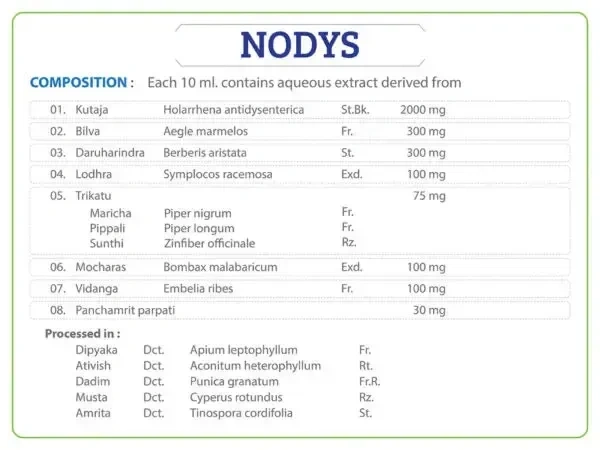Information about Nodys Tablets (20Tabs) – Ayurchem