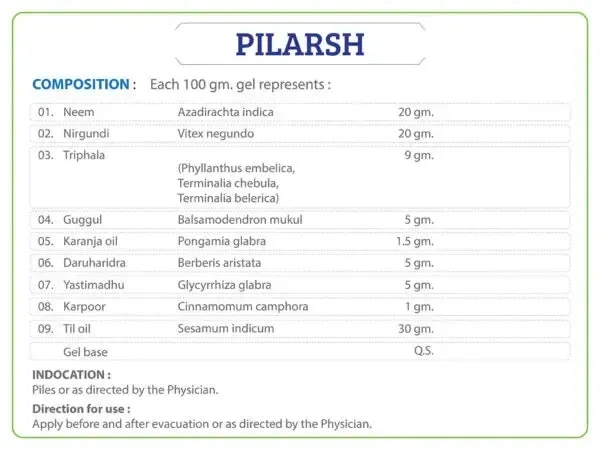 Information about Pilarsh Gel (25Gm) – Ayurchem