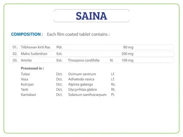 Information about Saina Tablet – Ayurchem