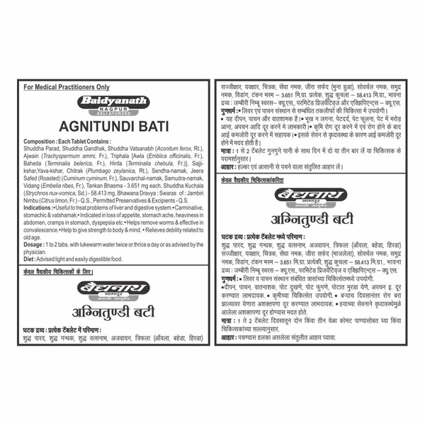 Information about Agnitundi Bati (80Tabs) – Baidyanath