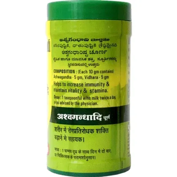 Baidyanath Ashwagandhadi Churna is an ayurvedic herbal medicine prepared with old traditional methods which is widely used to build immunity, vitality and stamina. It restores energy level, enhances stamina, relieves stress and improves physical endurance.