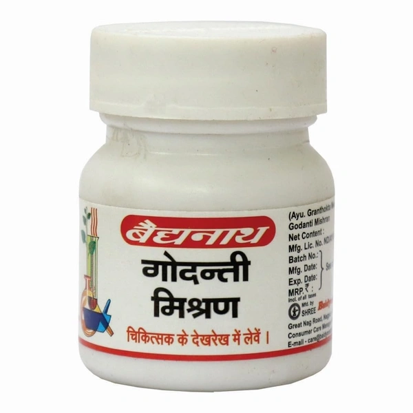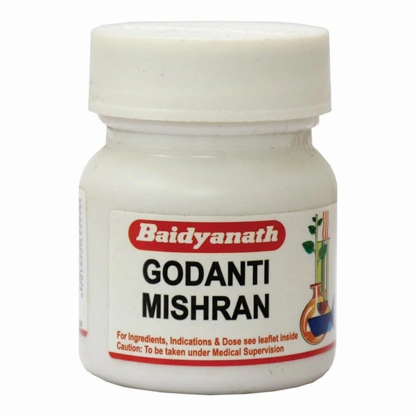 Baidyanath Godanti Mishran Tablet is an Ayurvedic formulation designed to offer effective relief from fever, body aches, and general fatigue. Known for its analgesic properties, this medicine is also beneficial in reducing vomiting and calming the body. The combination of key ingredients such as Godanti Bhasma and Shringa Bhasma makes it an ideal remedy for those suffering from fever-related discomforts. With its holistic approach to health, this tablet helps rejuvenate the body and restore balance.