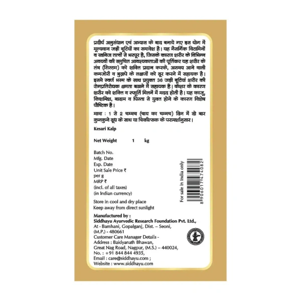 Importance of Swarna Bhasma: Gold acts as a powerful rejuvenator which helps to boost immunity, detoxifies the body and builds healthy tissues. While saffron has antioxidant property, used as energy booster and vitalizer.