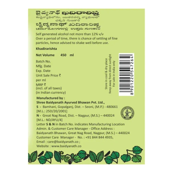 Khadirarishta is a classical Ayurvedic formulation traditionally being used as an Ayurvedic blood purifier. It aids in removal of toxins from the blood and hence, highly effective in relieving skin diseases and problems related to it.