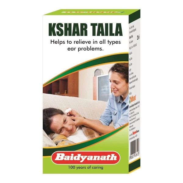 Baidyanath (Jhansi) Kshar Tel is a herbal oil formulated to treat various ear-related conditions. This Ayurvedic remedy is specifically designed for the treatment of tinnitus, earache, hearing loss, and worm infestations. The oil is also beneficial for otorrhea (discharge from the ear), pain, earwax buildup, and ear infections. It combines powerful Ayurvedic ingredients processed in mustard oil to provide effective relief for ear diseases and improve hearing health.