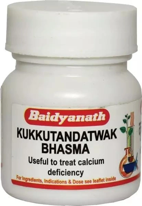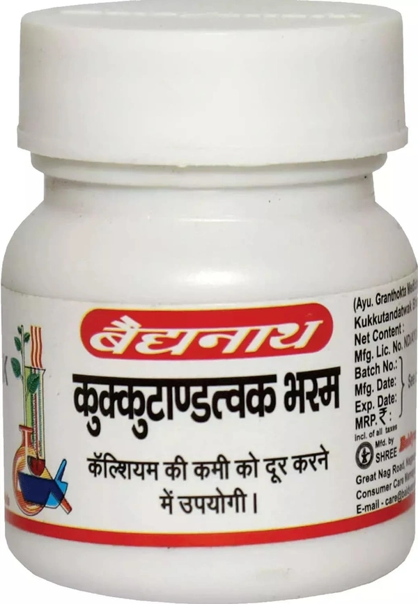 Kukutatnadtwaka Bhasma is an Ayurvedic formulation made by Baidyanath that is traditionally used in the treatment of a variety of ailments, primarily those related to respiratory issues, digestive problems, and general health conditions. The term "Bhasma" refers to a type of ash prepared by calcining medicinal herbs or minerals, which are then used for therapeutic purposes in Ayurveda.
