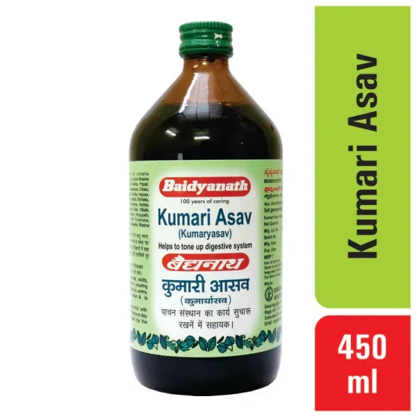 Baidyanath Kumari Asava is an Ayurvedic liquid formulation made from Aloe Vera (Kumari) and other natural herbs. It is primarily used to support digestive health, liver function, and detoxification. Aloe Vera has long been valued in Ayurveda for its numerous benefits, and when combined with other medicinal herbs, it is believed to provide an effective natural remedy for various health issues.
