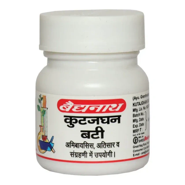 Baidyanath Kutajghan Bati is an Ayurvedic medicine that is commonly used for the treatment of digestive issues, particularly those related to diarrhea and dysentery. It is a combination of herbs that have been traditionally used to improve gut health and manage conditions such as irritable bowel syndrome (IBS), chronic diarrhea, and other digestive disturbances.