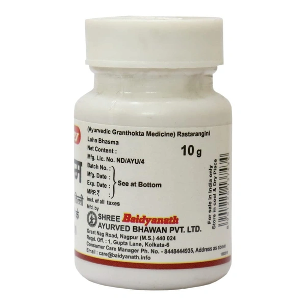 Baidyanath Loha Bhasma is an Ayurvedic formulation made from iron (Loha) that has been processed through a unique method of purification and calcination (bhasma). It is one of the bhasma (herbal ash) preparations used in Ayurveda for its therapeutic properties. Loha Bhasma is primarily used to treat iron deficiencies, and it has several other health benefits, especially related to blood formation and overall vitality.