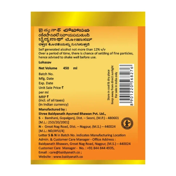 Baidyanath Lohasav is an ayurvedic medicine for iron deficiency and anemia. It has haematinic (increases hemoglobin levels) and hematogenic activity (helps in formation of red blood cells) processed by fermentation method (Asav arishta base) so it gets absorbed more easily. Loha bhasma with other medicinal herbs helps to treat anemia and related problems.