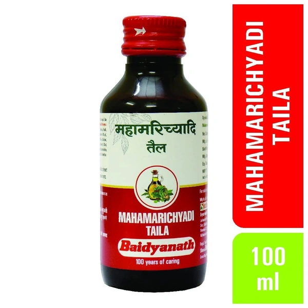 Baidyanath Asli Ayurved Mahamarichyadi Taila (Oil) is a traditional Ayurvedic oil known for its therapeutic properties, particularly in providing relief from muscular pain, joint pain, and other inflammatory conditions. It is formulated using potent herbs like Marich (black pepper), Ginger, Camphor, and other natural ingredients that are well-regarded in Ayurveda for their analgesic, anti-inflammatory, and warming effects.