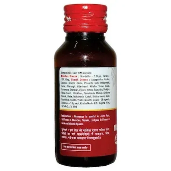 Baidyanath Mahamash Tel 100ml is one of the powerful ayurveda oil, widely used for many neurological conditions. The main ingredient of this oil is mash or urad (split black lentils), along with til tel(sesame oil), dashmool, ashwagandha, kachur, bala mool and jivniya gana and hence it is named Mahamash oil in which masha means black gram, which is the main ingredient of this oil. It is used both for external and internal administration. It contains a non-veg ingredient.