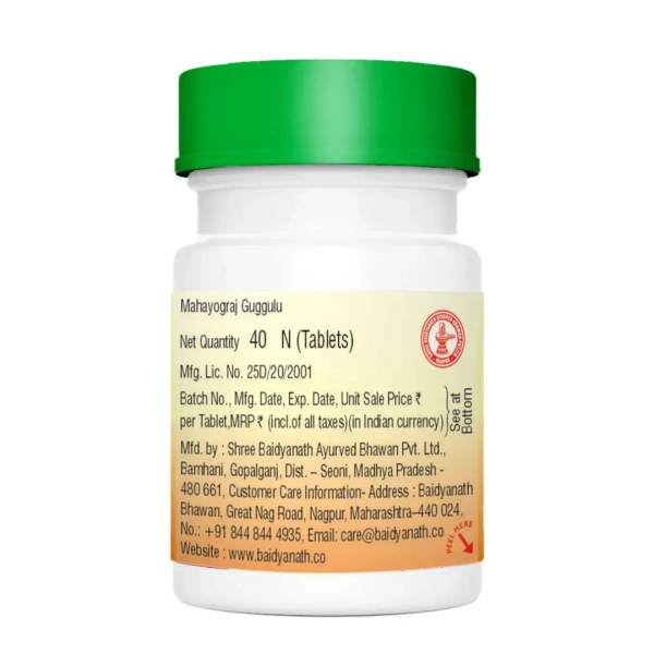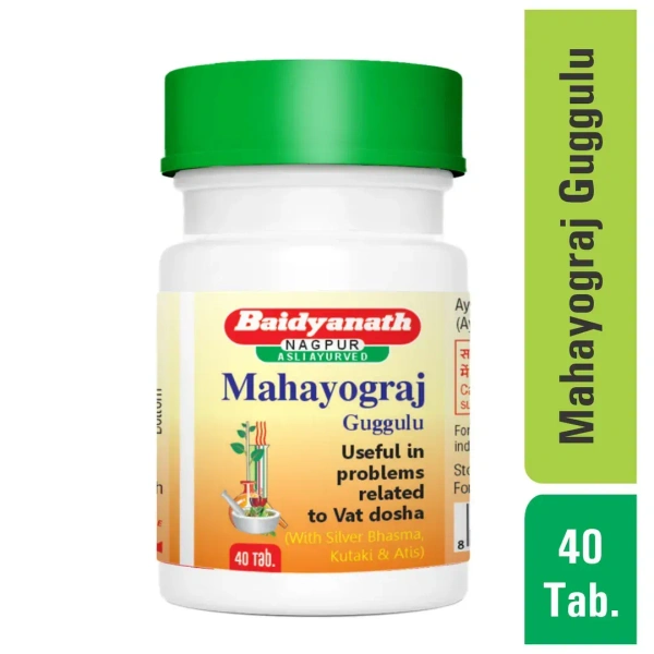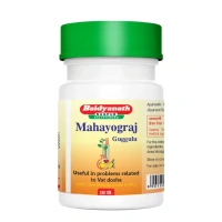 Baidyanath Mahayograj Guggulu is a traditional Ayurvedic herbomineral formulation that has long been used to treat chronic vat illnesses. The formula contains a synergistic blend of detoxifying herbs that work in tandem with Guggulu to alleviate joint, muscular, and nerve problems caused by aggravated Vata dosha. The use of valuable bhasma increases the efficacy of Mahayograj Guggulu. Chronic vat illnesses, gout, ligament pain, and other conditions are treated with Mahayograj Guggulu.