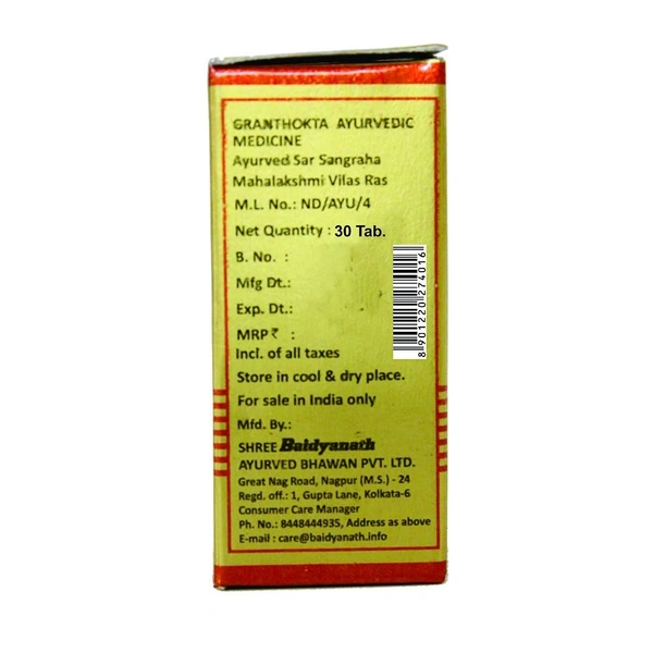 Baidyanath Asli Ayurved Mahalaxmivilas Ras With Gold - 30 Tablets