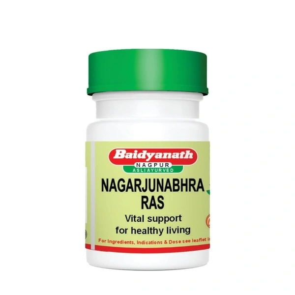 Baidyanath Nagarjunabhra Ras Tablets are a specific Ayurvedic formulation aimed at providing various therapeutic benefits. This tablet combines potent Ayurvedic ingredients, including Abhraka Bhasma (mica-based ash) and other herbal substances, which are traditionally used to improve health and vitality.