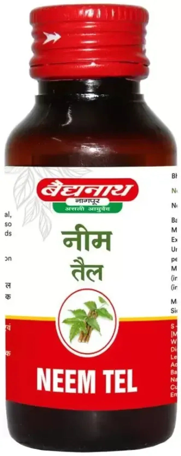 Baidyanath Neem Tel Herbal Oil (50 ml) is a natural oil made from neem leaves and other Ayurvedic herbs. Known for its potent antiseptic, antifungal, and anti-inflammatory properties, it is widely used for skin care and overall health.