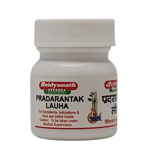 Baidyanath (Jhansi) Pradrantak Lauh Tablet is an Ayurvedic formulation based on Lauha Kalp, which combines Lauha Bhasma (Iron Bhasma) with other potent herbs and minerals. This herbo-mineral blend is primarily used in the treatment of menorrhagia, metrorrhagia, and leucorrhea, effectively managing abnormal white discharge in women. It is also known to improve appetite and support overall digestive health. As it contains heavy metal ingredients, it should be taken only under medical supervision.