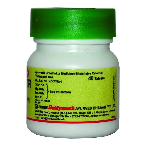 Baidyanath Pradarantak Ras is an Ayurvedic formulation that is primarily used for gynecological health. The name "Pradarantak" refers to its role in treating Pradar (a term for abnormal vaginal discharge, commonly related to conditions like leucorrhea). It is also used to address other related health issues in women, especially those related to menstrual and reproductive health.