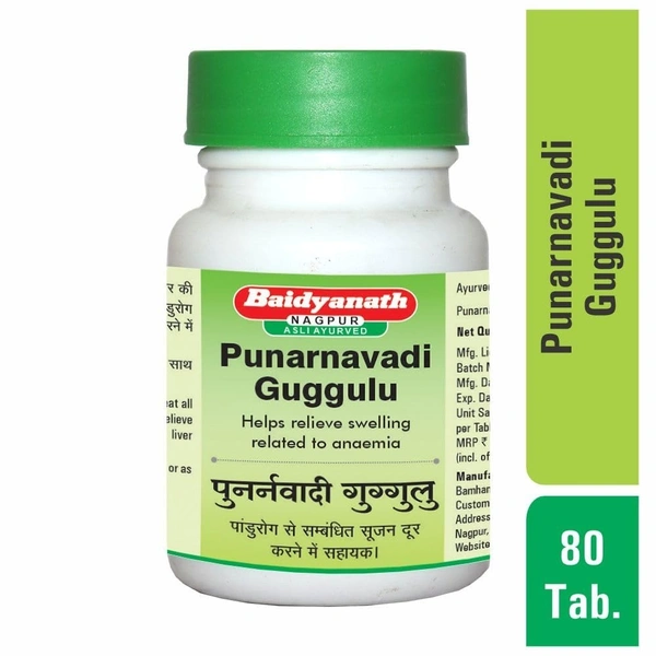 Baidyanath Punarnavadi Guggulu is an Ayurvedic formulation made with a combination of natural herbs, including Punarnava (Boerhavia diffusa), and Guggulu (Commiphora wightii), a resin that has been used in traditional Ayurvedic medicine for centuries. This product is widely used for its therapeutic benefits, especially for promoting kidney health, joint function, and overall vitality.