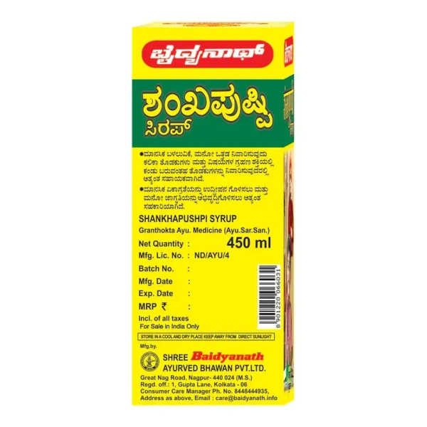 Baidyanath Shankhpushpi is an ayurvedic tonic for the brain and nerves. It is useful in mental weakness, forgetfulness, poor concentration. It also calms the mind and reduces anxiety and mental stress. Enriched with goodness of Shankhapushpi and Brahmi that helps to improve memory, enhance concentration and learning capabilities.