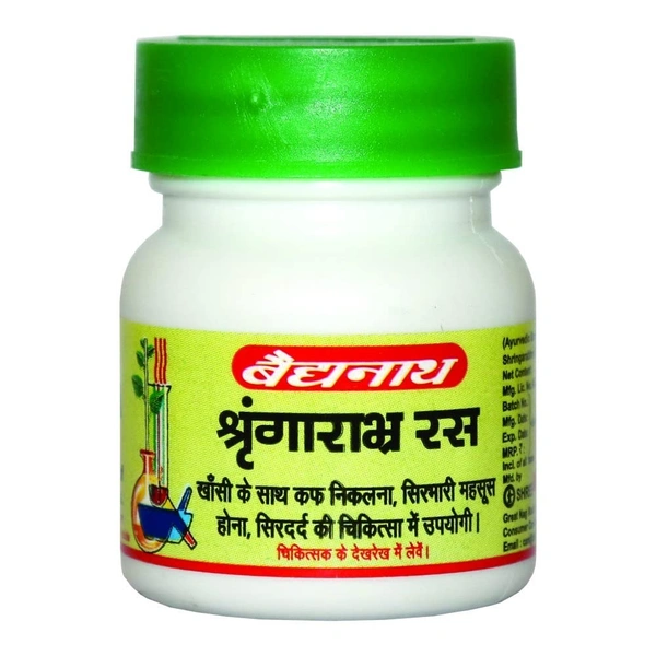 Baidyanath Shringarabhra Ras (40 Tablets) is an Ayurvedic formulation that combines several potent ingredients, including Abhrak Bhasma (Mica Bhasma), which is known for its rejuvenating and revitalizing properties. This product is often used to support overall vitality, treat respiratory issues, and boost immunity.