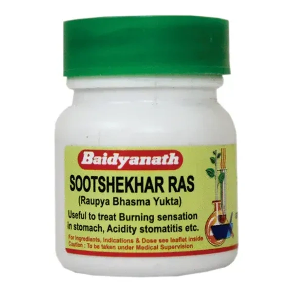 Sootshekhar Ras is a classical Ayurvedic Medicine act as an antacid, carminative and stomachic. Antacid , Relieves excessive heat of the body.
