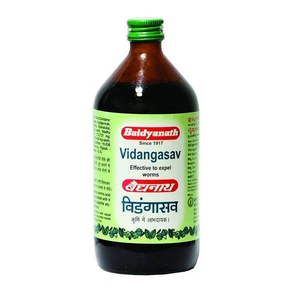 Baidyanath Vidangasava is an Ayurvedic formulation designed to address digestive and intestinal health. It is primarily used to manage conditions like intestinal worms (parasites), digestive disturbances, and gastritis. The formulation contains a combination of herbs and ingredients that have been traditionally used in Ayurveda to promote digestive health, detoxification, and parasitic cleansing.