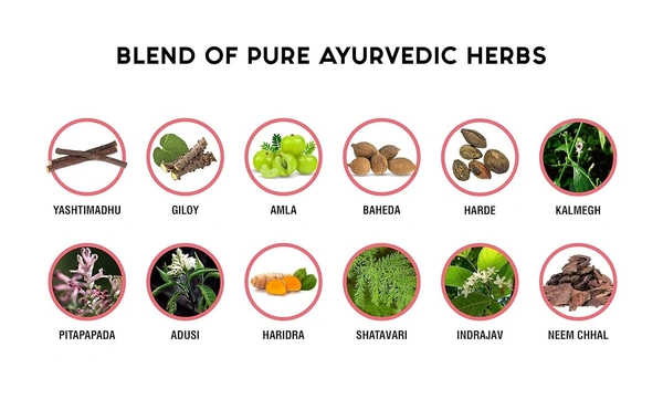 Harde (Terminalia chebula): Known for its digestive benefits, it helps in relieving constipation and bloating.