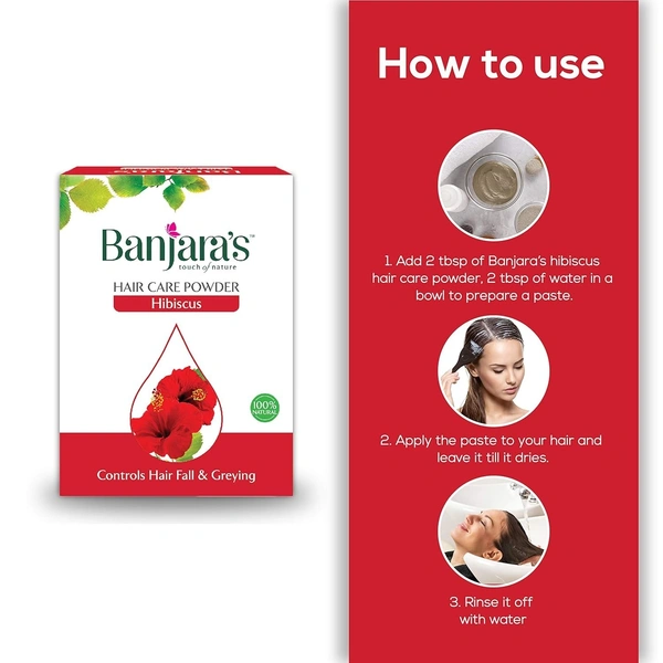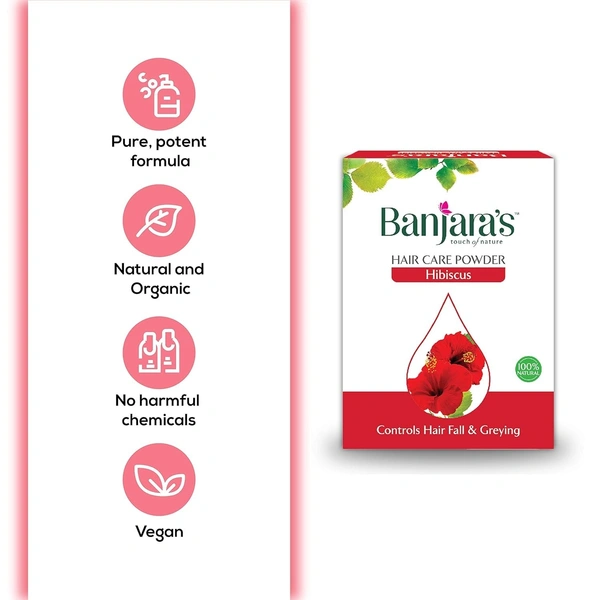 BANJ Hibiscus Hair Care Powder is a natural hair care solution that nourishes the scalp and promotes healthy hair growth. Hibiscus, along with other Ayurvedic ingredients, helps reduce hair fall, improve texture, and give your hair a glossy shine. The powder also treats dandruff and prevents scalp infections, leaving your hair feeling soft, smooth, and rejuvenated. It is suitable for all hair types and offers a natural alternative to chemical-laden hair care products.