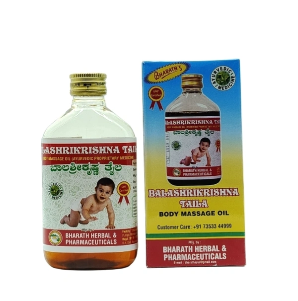 Balashrikrishna Taila is an Ayurvedic oil formulated by Bharath Herbal. This therapeutic oil is designed for both infants and adults, offering a range of benefits from promoting healthy development in babies to alleviating musculoskeletal discomfort in adults.